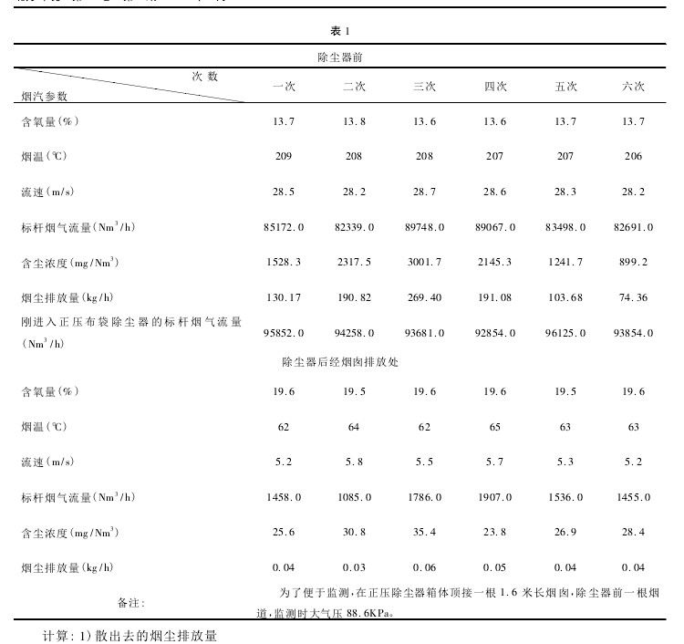 烏海市是自治區(qū)高耗能_,這幾年高耗能工業(yè)實現(xiàn)了迅猛的發(fā)展,同時環(huán)境污染也日益嚴(yán)重。為了減少污染,企業(yè)逐步上了環(huán)保設(shè)備。在各類環(huán)保設(shè)備中,正壓布袋除塵器以其良好的除塵效果和較小的維護成本受到眾多企業(yè)的青睞。但正壓除塵器在國內(nèi)上的比較少,_還沒有針對它的監(jiān)測方法,因此對我們環(huán)保監(jiān)測人員提出了新的挑戰(zhàn)。按照_目前現(xiàn)有的固定污染源監(jiān)測規(guī)范和方法,要想監(jiān)測_要把正壓除塵器的百葉窗堵死,然后在正壓除塵器的箱體頂部接上煙囪,這樣_能監(jiān)測出準(zhǔn)確的結(jié)果。但因為密封不嚴(yán),實際工作中遇到很多問題,除塵器前后風(fēng)量對不上很難準(zhǔn)確計算除塵效率。百葉窗堵死后由于箱體內(nèi)的熱量得不到很好的散出,箱內(nèi)溫度上升快,很容易把布袋燒了,而換布袋又要花掉企業(yè)很大一筆錢,所以這種方法在實際工作中不能廣泛使用。我們監(jiān)測時_想了另一種辦法( 同時還和同樣爐型的負(fù)壓除塵器作了對比) : 不封百葉窗,在正壓除塵器的頂部接上煙囪,進入正壓布袋除塵器的煙氣經(jīng)過布袋除塵后,塵已經(jīng)是很少很少了,而且粒徑也更小了,在溫度相同時,這些_級細(xì)小的塵也只能在箱體內(nèi)做均勻熱運動,箱體內(nèi)部、各個區(qū)域( 百葉窗和煙囪) 散出的煙氣濃度基本相同,可以認(rèn)為是一樣的,我們很容易根據(jù)_現(xiàn)有的固定污染源監(jiān)測方法把經(jīng)煙囪散出的煙氣濃度準(zhǔn)確的監(jiān)測出來,也_是散出的煙氣濃度。散出的煙氣體積也_是剛好進入正壓除塵器箱體時的體積,而這個體積可以在箱體前的_接近平直煙道處打孔測出,通過測試和計算_實現(xiàn)了對正壓布袋除塵器的監(jiān)測。為此我們在日常工作中不斷摸索反復(fù)對比認(rèn)為這一方法可行。在眾多礦熱爐數(shù)據(jù)中抽選幾組如下: