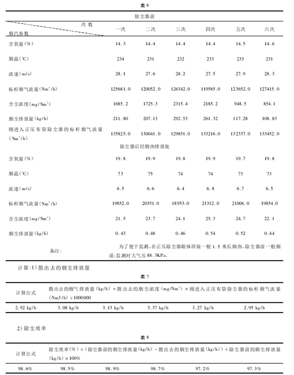 通過比較正壓布袋除塵器和負(fù)壓布袋除塵器的六組排放量,可以得出結(jié)論: 正壓布袋除塵器監(jiān)測和計算的結(jié)果與負(fù)壓布袋除塵器準(zhǔn)確監(jiān)測結(jié)果基本相同,誤差很小,所以這種方法可行。