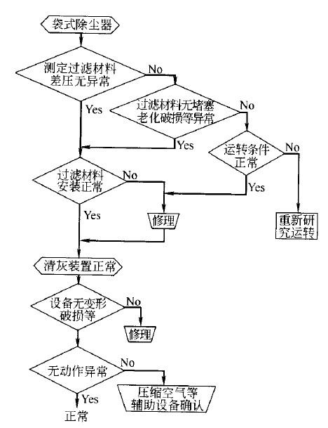 布袋除塵器的維護(hù)管理對(duì)確保除塵器的穩(wěn)定運(yùn)行,達(dá)到預(yù)期的除塵效果具有重要意義。布袋除塵器檢修流程如圖所示。