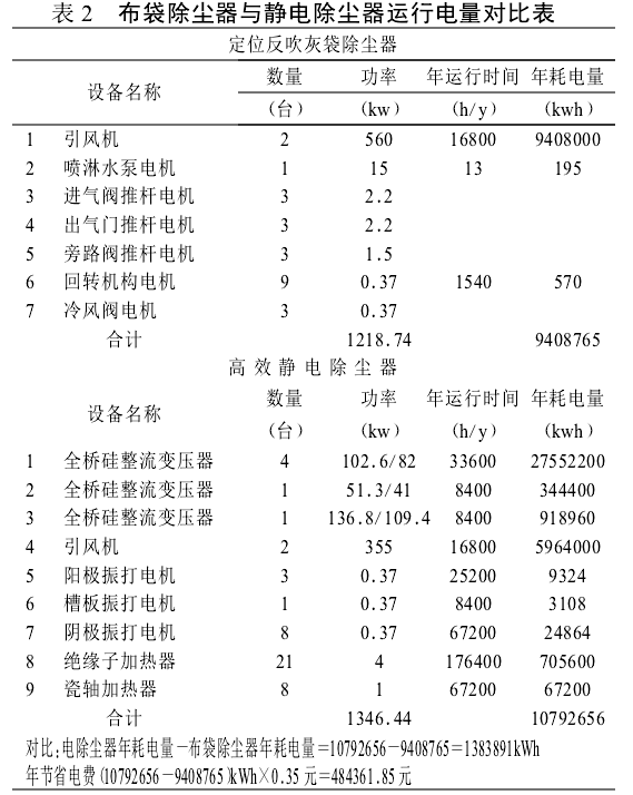 電除塵器由于電除塵器不具備離線檢修功能,一旦發(fā)生故障,只能停爐檢修,否則只能帶病運行。檢修時員工需進入除塵器內(nèi)部,工作環(huán)境惡劣。除塵器內(nèi)部裝置損壞程度及位置_依靠人力完成檢查工作,檢修勞動強度大。布袋除塵器和電除塵器耗電量對比。