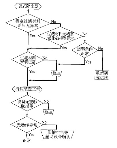 布袋除塵器檢修流程如圖所示。在工作中維護(hù)容易被忽視的原因有三個: