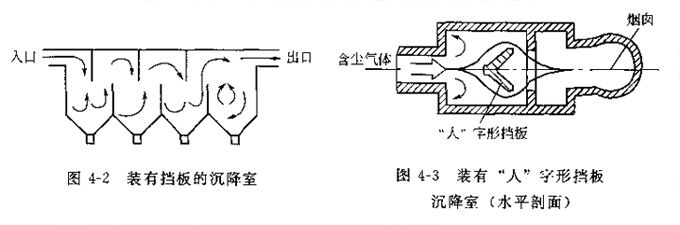 ③沉降室內(nèi)可適當(dāng)設(shè)置擋墻板,(采用水平隔板降低室高度形成多層沉降室)以提高除塵效果。